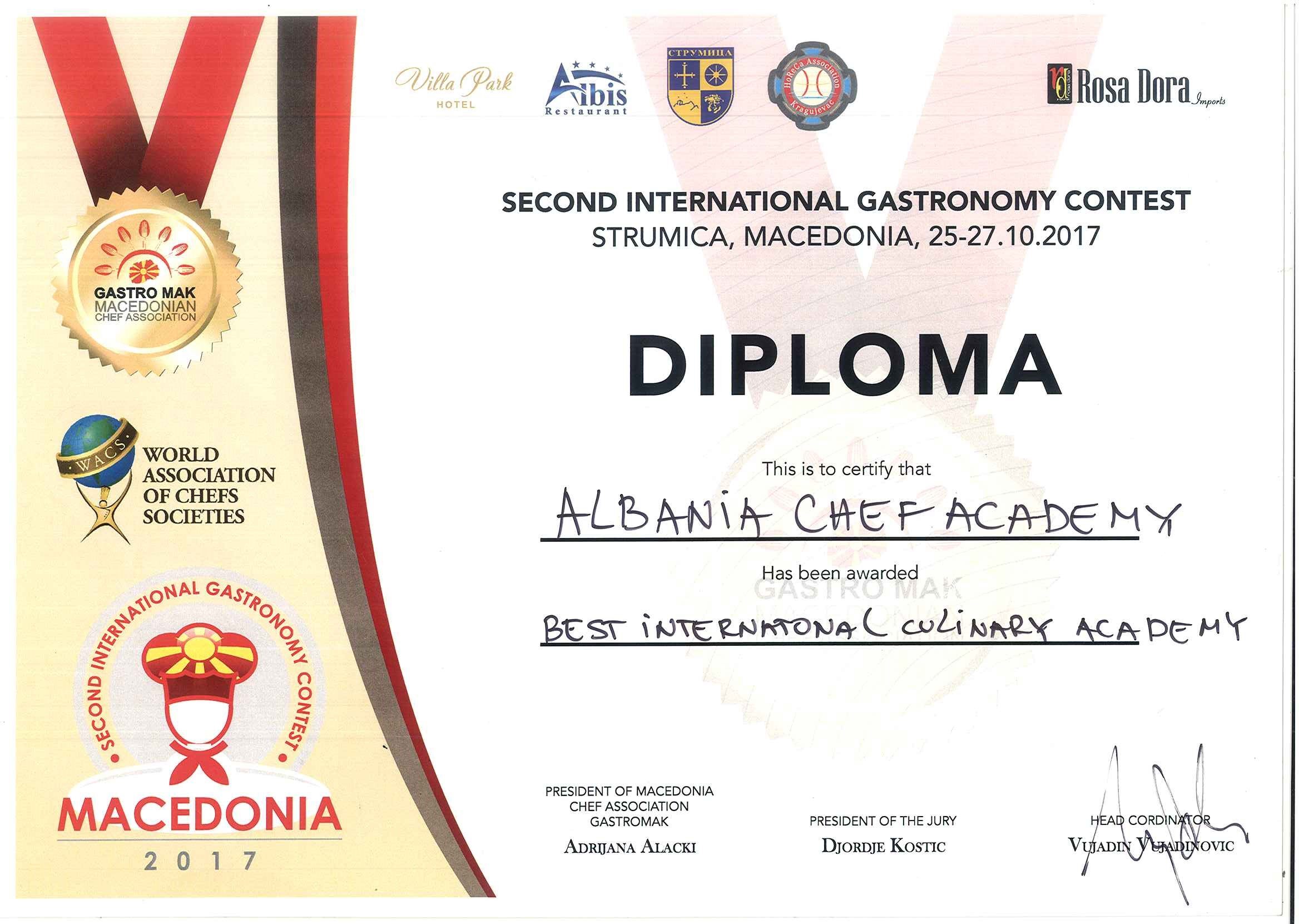 Certificate of Appreciation 1st International Gastronomy Contest Macedonia (18.10.2016)